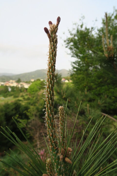 ベニクジャクマツは、クロマツの園芸品種なのか、クロマツとアカマツの交雑種なのか、意見が分かれているようですが、いずれにしても日本で開発(または発見)されたもので、日本の環境に適している木です。 私は、ベニクジャクマツを矮性品種と勘違いして2〜3mぐらいの幅しかない自宅の前庭に植えてしまいました。松の木は風に強いことが有名なので、風当たりが良すぎる前庭にぴったりと思いましたが、成長は意外と速かったです。2番目の写真で4月に枝先から出る新芽(みどり)が見えます。これよりも長い新芽もよく出ます。小さい苗木は、5,6年で私の2階バルコニーの手摺まで達しました。極端に広い定義を使わなければ「矮性品種」と言えません。樹高に関するデータがほとんどないですが、10〜15年で8mかそれ以上になるのではないかと私は思います。ベニクジャクマツは予想しにくい幹の捩じれや長い横枝が多くのスペースを要します。個人宅の敷地には向いていません。「みどり摘み」という作業で木のサイズは抑えられますが、時間がかかる上にある程度の技術が必要です。興味があれば、ユーチューブには動画がたくさんあります。 木の大きさとは別の問題もあります。松から大量の針葉が落ちて、なかなか自然分解しません。松の下には、写真に写っているように針葉が厚さ数センチの層になります。落ちる途中で他の植物に引っ掛かる針葉も多いです。ベニクジャクマツは、育てやすくて暑さ、寒さ、風などに強いですが、広い公園での使用しかお薦めできません。 |
